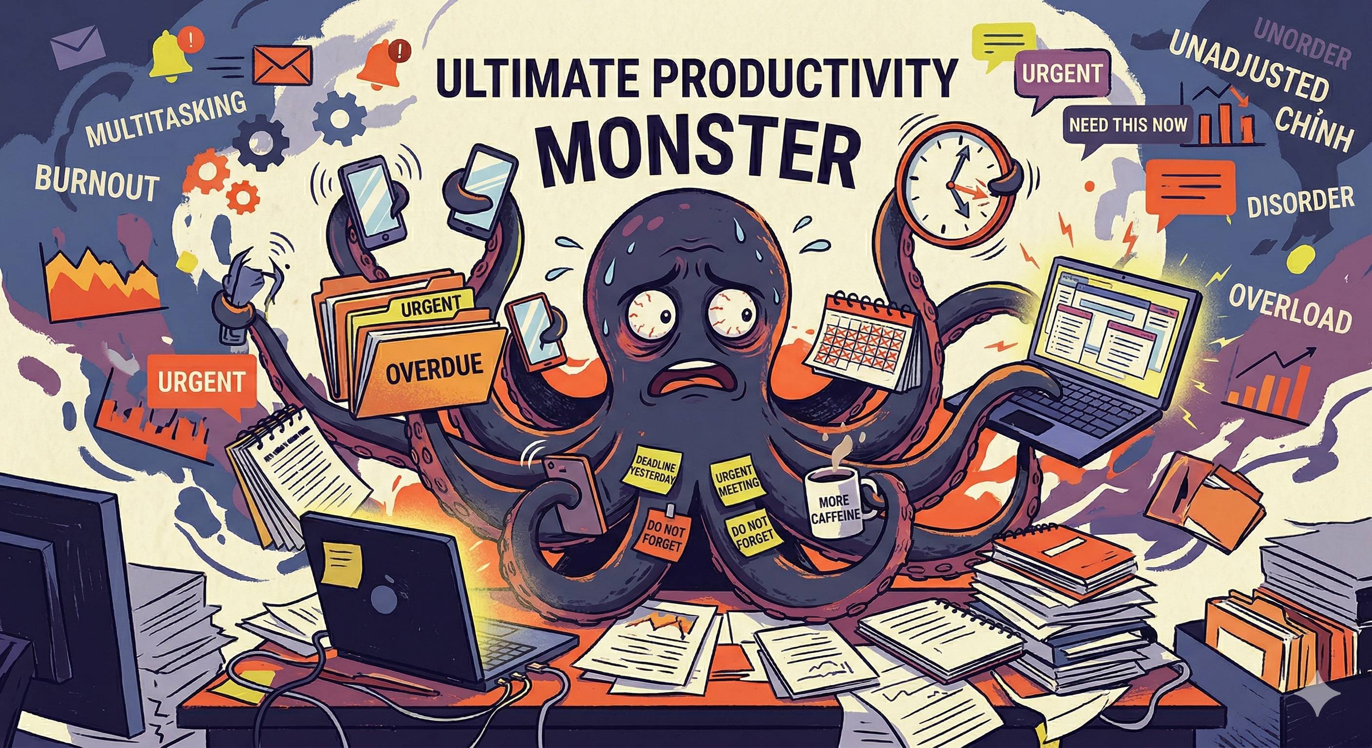 Octo-Xpress never attacks head-on. It uses its *eight tentacles* to create countless minor distractions: a Facebook notification, a "harmless" short video, or the trap of "perfect preparation".