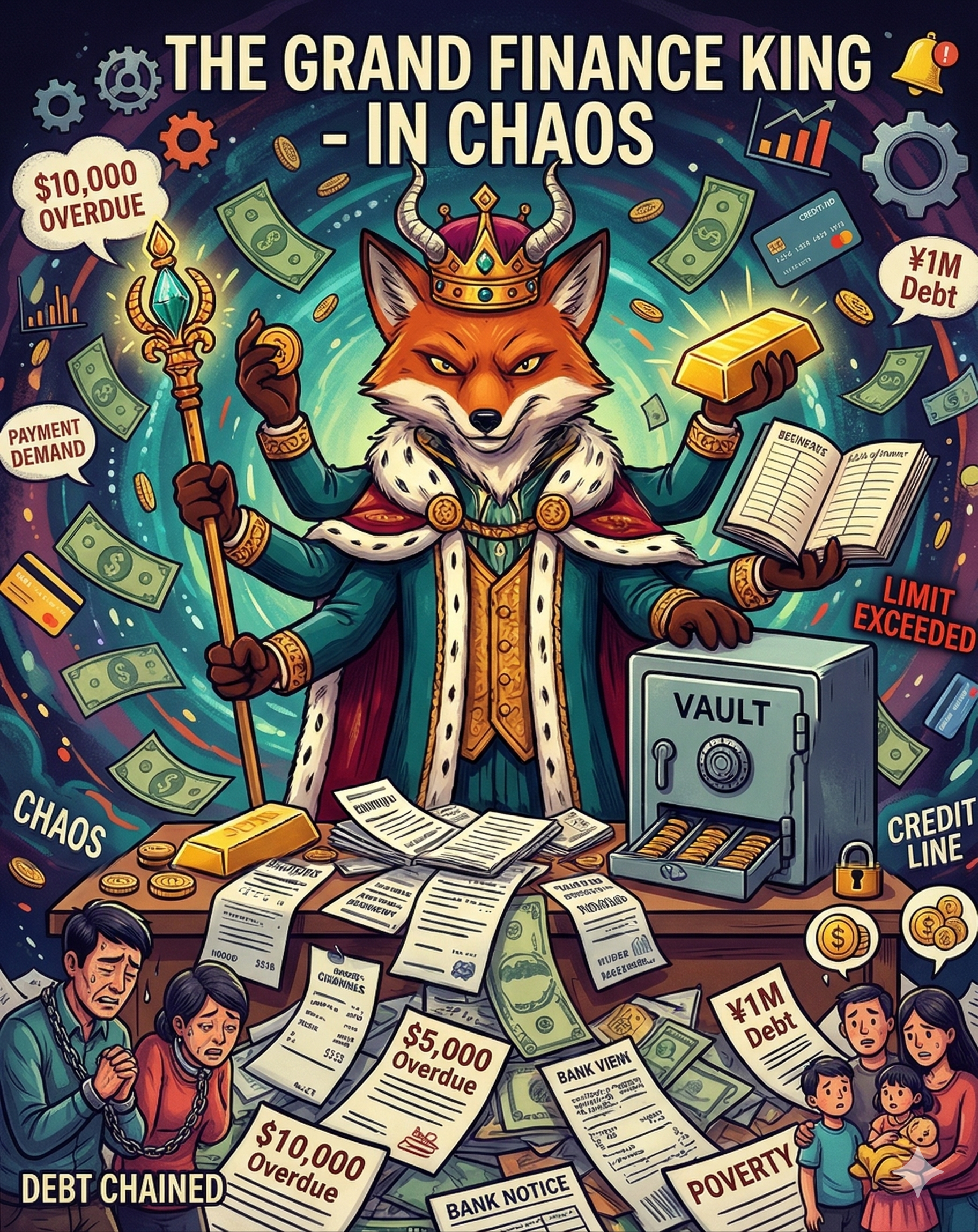 Kitsune-Gold is a nine-tailed fox with a glamorous appearance. It turns impulsive spending into "essential" needs and hides debt traps behind promises of a *luxurious lifestyle*.